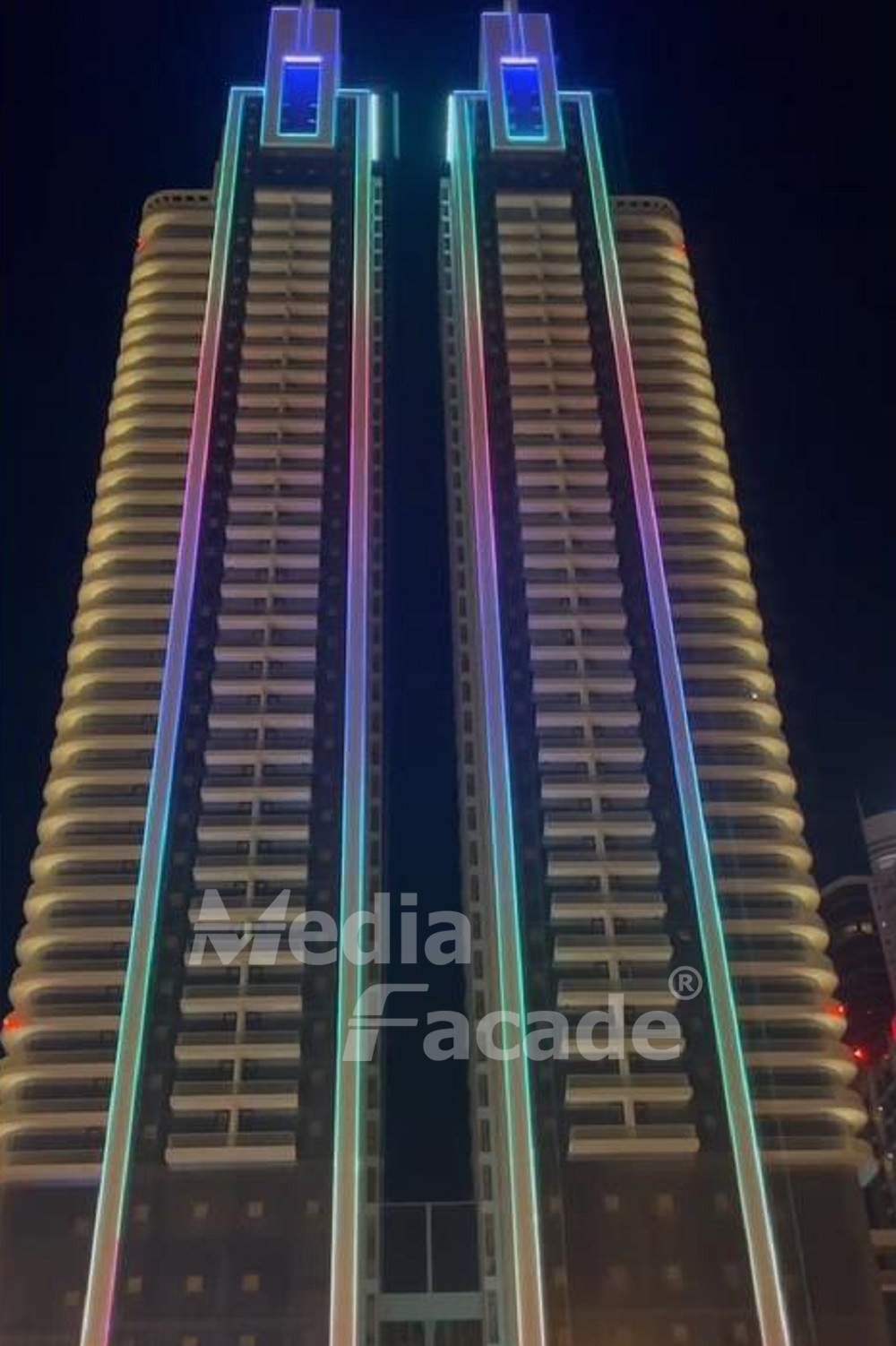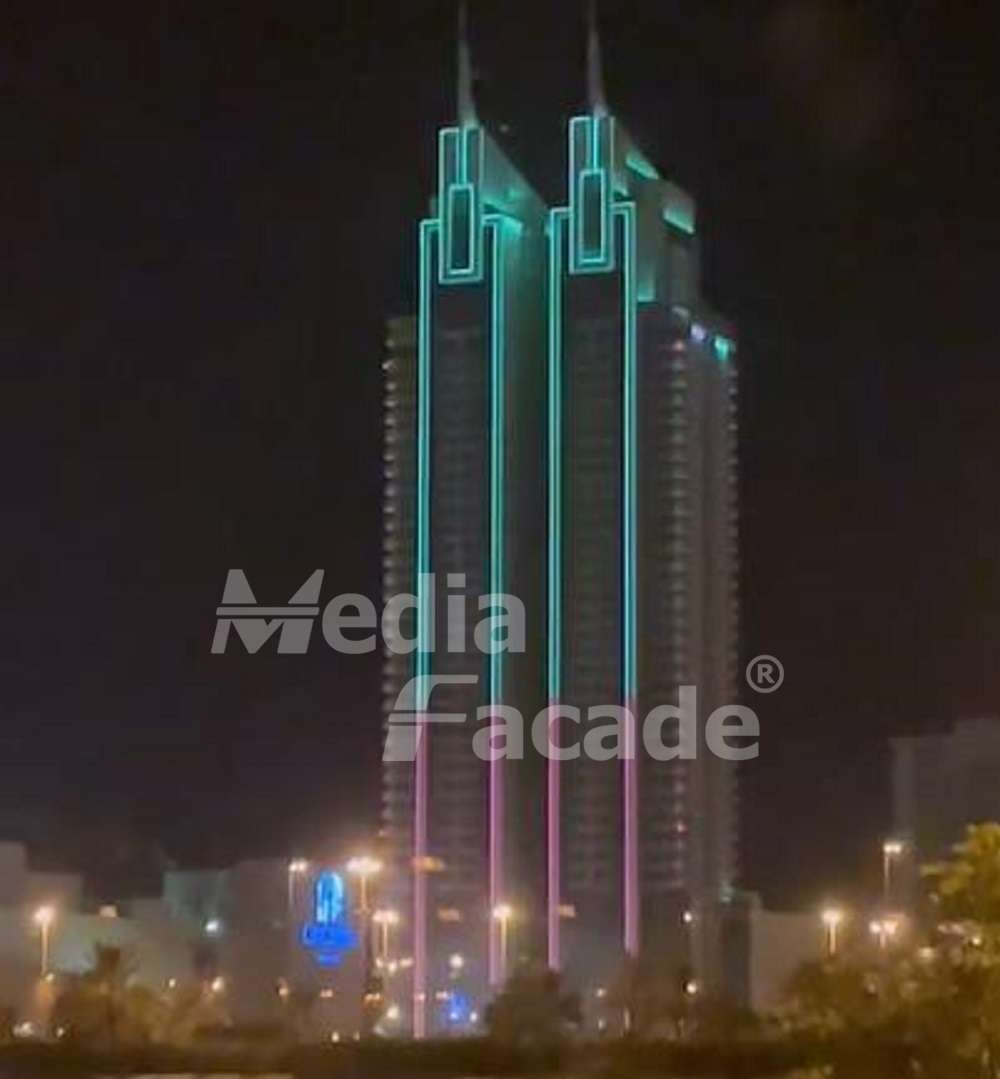 This building is the outstanding work of Arab Architects, and Media facade has provided 3000 meters of linear lights LD22 and high power 72W wall washer for this project, bringing a unique color to the dark night of Bahrain. It’s were designed with MF Lighting to grace Bahrain’s enchanting skyline with a striking appearance.