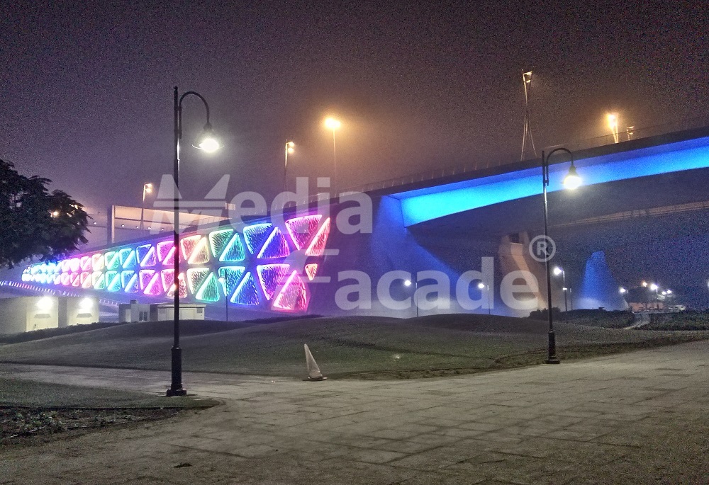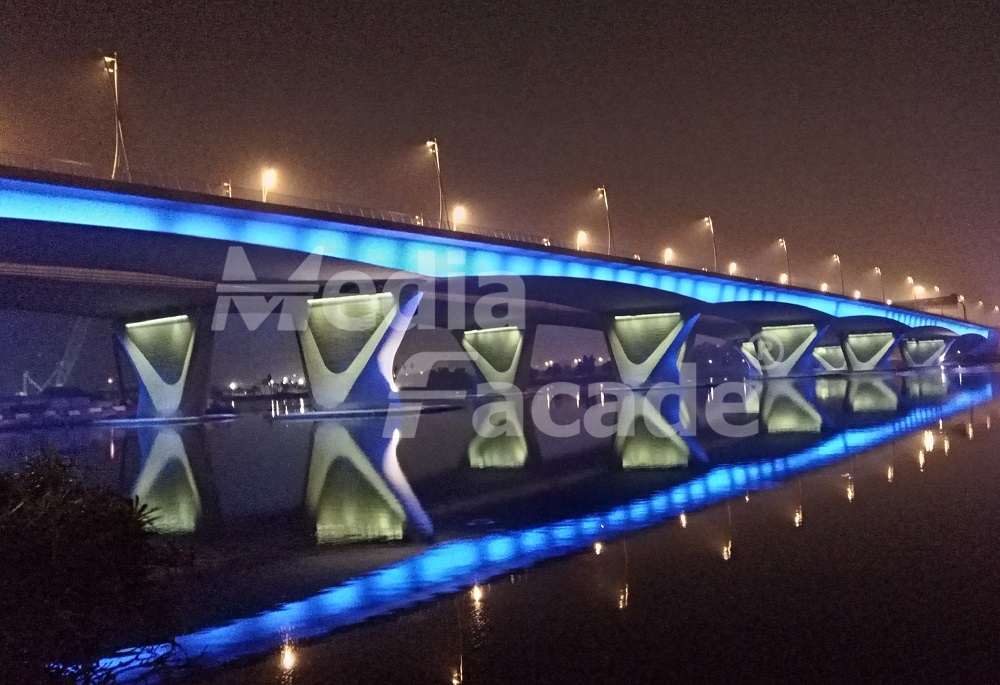 Garhoud Bridge is one of the bridges across the Dubai River, which has a total length of 520 meters and .It’s located near the Dubai Creek park, so the bridge deck of the structure has a very high demand. Night falls, colorful lights change along the bridge on both sides along all its extension, and the river reflection cross-match, showing the natural beauty of the bridge, showing modern prosperity.