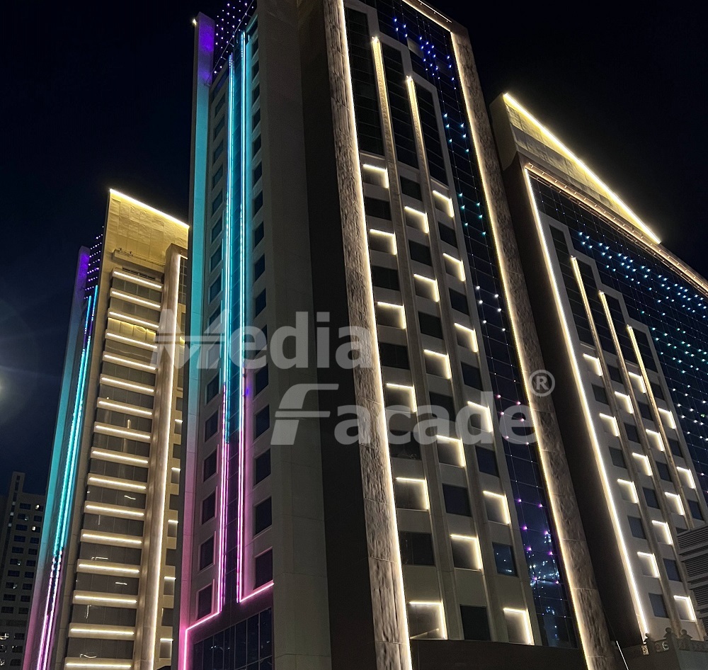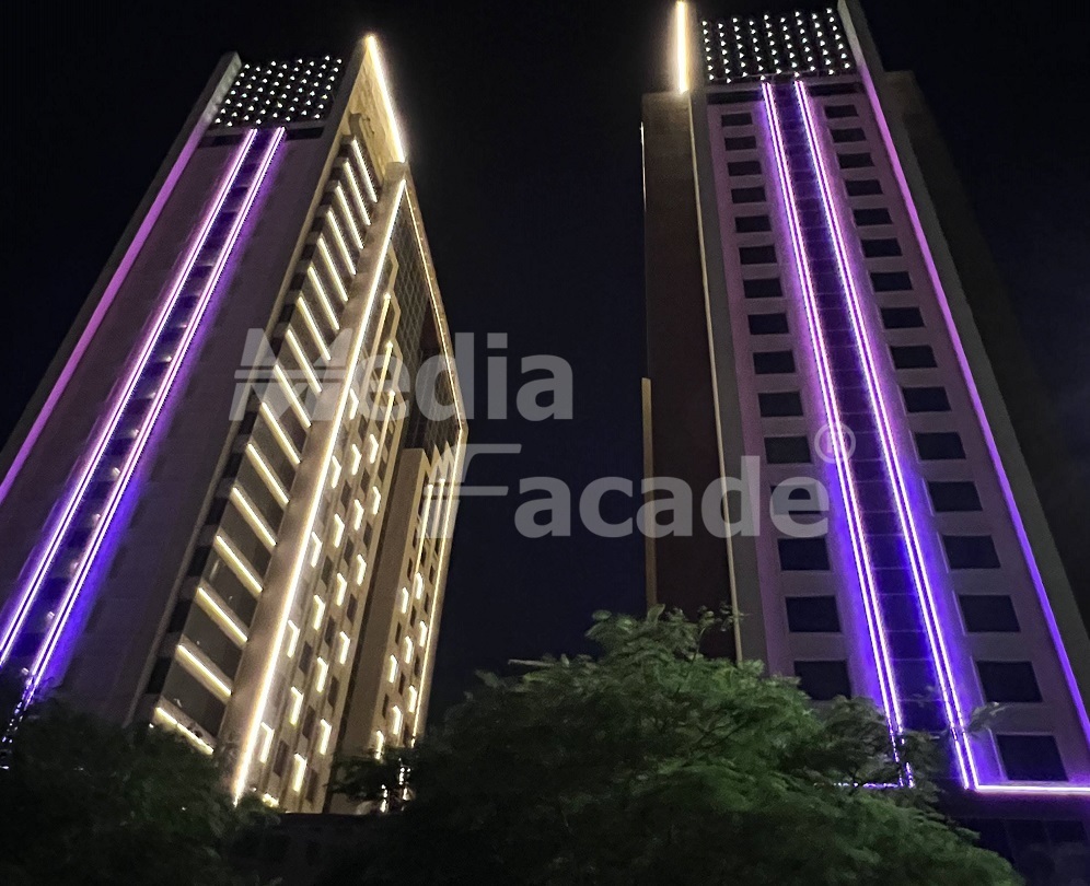 TALT it is a 40 floor office building with twins tower.MF use linear light LD22 and Ideal to isntall on the window area,also the Pixel C62 lay on the galss facade, it is DMX protocol by 1 center control system.